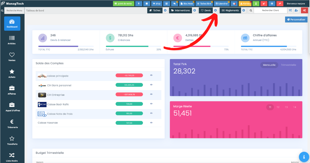 La principale façon de créer un devis est à partir du formulaire de transaction.